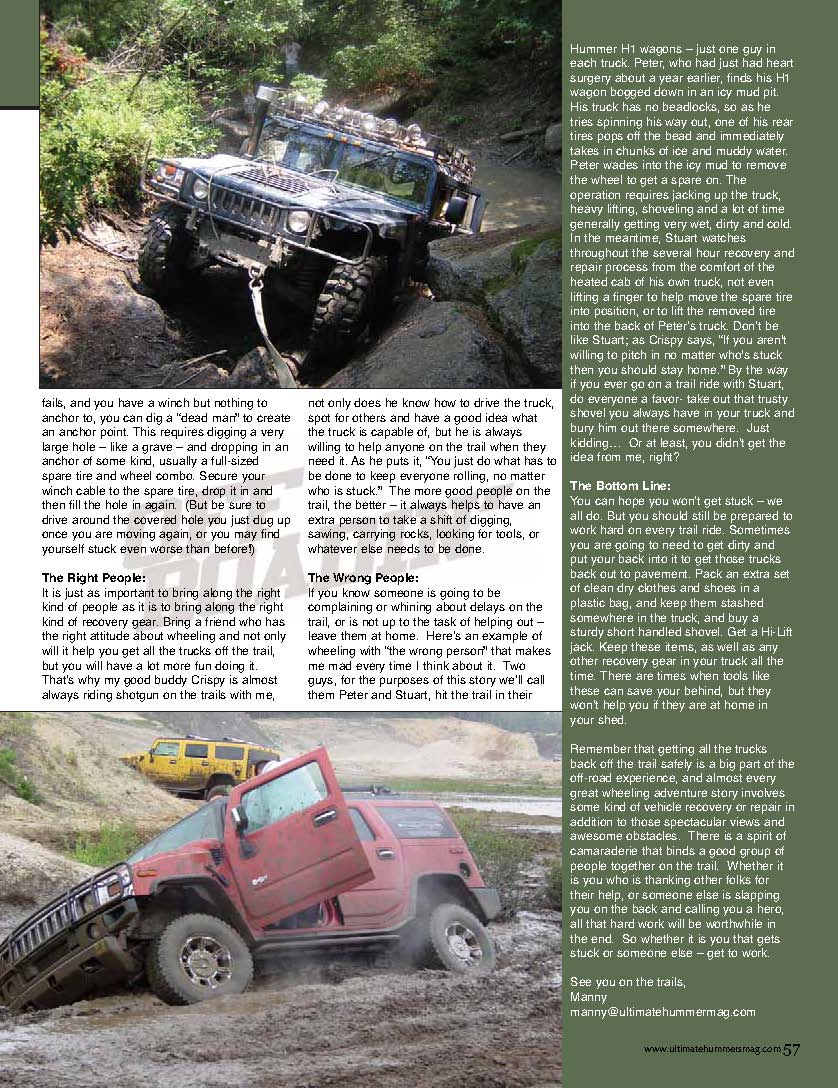 Off-Road Column about AM General and GM HUMMER H1, H2 and H3 4x4 vehicles from ULTIMATE HUMMERS Magazine