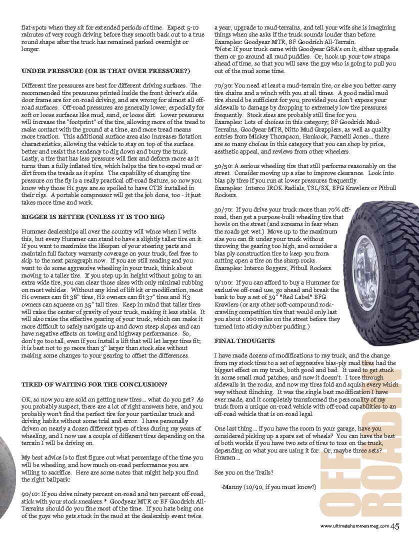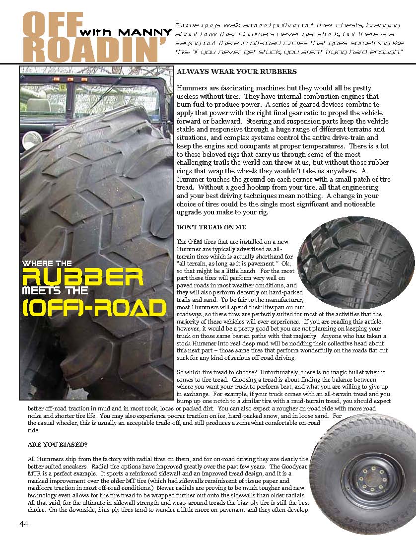 Off-Road Column about AM General and GM HUMMER H1, H2 and H3 4x4 vehicles from ULTIMATE HUMMERS Magazine